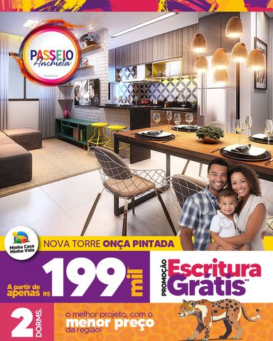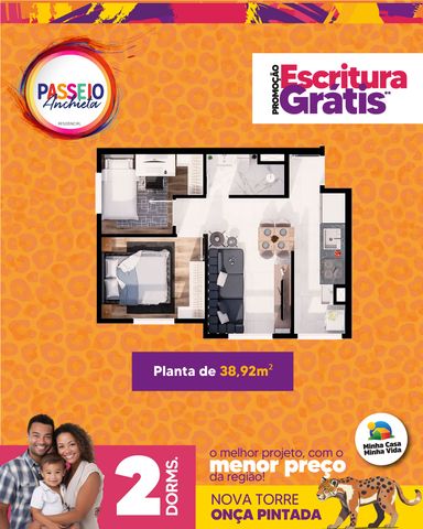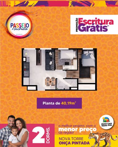 Localizado no Residencial Passeio Anchieta – Torre Onça Pintada, este apartamento de 40m² com 2 dormitórios foi projetado para oferecer praticidade, conforto e qualidade de vida, perfeito para quem quer sair do aluguel ou investir com segurança.